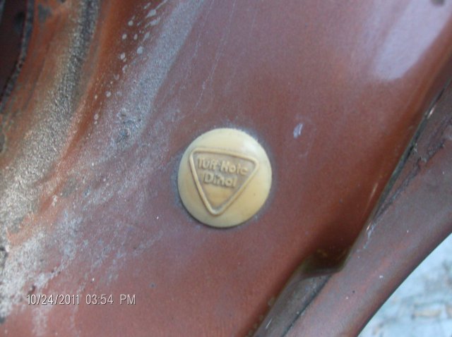 Thanks. I do what I can with the time I have. Which brings me promptly to the next point. I need the cars off the shop property! If anyone needs anything let me know before they go off to the crusher. My 73' is still mechanically complete with a lot of good interior bits. Its got 3 screw SU's and I was told it was a good runner. PM me a offer if anyone wants to buy anything. When I get some Photos I will set up a classified ad. Iv'e had some free time this week so I have been able to spend some time with the 77' going over things. I have found a few more rust spots but nothing major. Most of the car is spotless but I will get into why later. The driveshaft has been installed and went in without issue. Both axles are bolted up but I do not have any nuts for the diff side flanges. The "K R180" that was in the parts car didn't use flanges so I didn't have anything handy. Brakes installed but still untested. The engine now runs smooth with all 6cyls firing. 2 of the stuck injectors freed themselves and 1 had to be replaced. There is a bad splice for the #2 injector so I will have to get that fixed shortly. Hopefully I will have it together enough to take it for a lap around the block soon. I'm getting excited. I have been looking into the wheels that are on the car : From what I can tell they look like Dan Gurney Victories. The rim is 7" lip to lip and its 14" diameter. Western wheel made this exact style wheel in 15x5.5 but I can not find any identifying marks on the one I pulled. One site I found listed that American Racing also made copies of it but like Western it should be labeled. The only thing I found was a sticker labeled "SEMA SPEC 5-1A". They are not the most attractive wheels but they sure are light and period correct. If there are any old school wheel experts out there who can help feel free to chime in. Iv'e always wondered what the black tar stuff all over the rear interior of the car was. Its sticky and gooey and gets all over anything you touch it with. I assumed that it was sprayed to cover up something one of the PO's didn't want to be seen. While I was sitting in the car a few hours ago just enjoying the sound of the engine running. I noticed all these little plastic plugs everywhere. I remember seeing one or two of them when I bought the car but never really questioned it to much. I don't know why I suddenly gave a damn(exhaust fumes?) but I started looking for them and they were everywhere. This is good News! I read about this from a piece about Dan Juday's Car. Link to PDF. The brand is different but I imagine the product is about the same. This particular brand is Tuff-Kote Dinol. This means my car is protected from the inside so I should just have to worry about the outside. This will work perfect with my plans to use 3M's Panel Bond in lou of welding for the body repair. No worries of anything catching on fire and I don't have to wash away my rust protection. It's win-win.