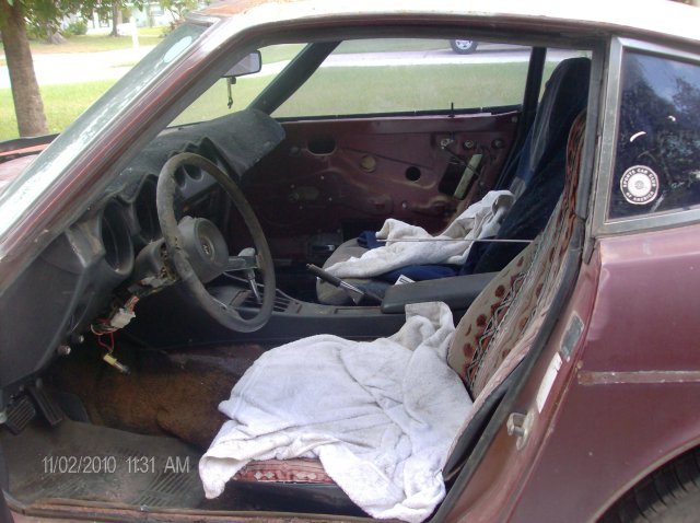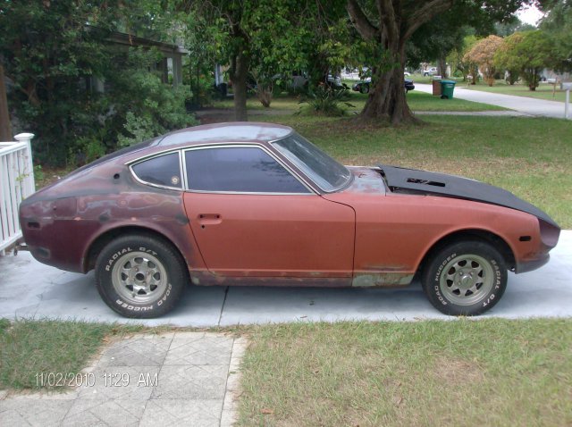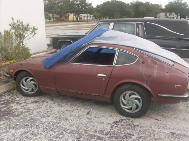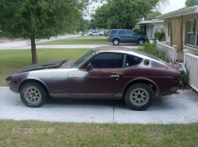 I picked up a new project to go along with my Z32 that is currently waiting on paint. I found this 78' 280z in Orlando for a good price so I'm going to try to rescue her. Rust wise it's not in to bad of shape. It is rotting in the usual areas with lots of bad rust repair attempts. The PO had the car shipped down from Michigan but did not have the time to give it what it needed. From what I gathered from the conversations with the PO is the car was destined to become someone's race car. After it was sent to the body shop to be fixed up it was then abandoned by the body guy part way through the stripping. The PO had it shipped here to finish it up. He made some attempts to fix her up but just didn't have the time with his schedule. The PO decided to let the car go for a little more then his shipping cost so someone could enjoy it. I hope to rescue her. The Plan: Step 1: get it running on the L28 and swap in a 5-speed if the auto is toast. Step 2: Rust repair (cut and weld) Step 3: Body and paint. Currently planing candy red with black powder coated trim. I'm tossing around the idea of ZG flares. Step 4: LQ9 / T56 swap; I would like a mild 400/400 street car. Observations so far: Passenger side floor is rotted but the drivers side looks to be salvageable with patching. I will be gutting it to find out. Frame rails have some soft spots but not nearly as bad is I've seen in the past. Both doglegs are rotted and have been been filled with Bondo. There is some rot around the lower rear. I have not found any deal killers in the body work so I hope to keep this chassis on the road. There is an incredible amount of surface rust! The electronics need sorting. The ignition is wired to a push button start. The engine loom is in rough shape and I have't even looked over the body wiring yet. I kind of like the wheels, but the tires are shot. The interior is also rough but not unfixable. The carpet is gone and the dash has a cap thats cracked and a mat covering the cap. It will need a new cap. I might swap a new dash or leather wrap. I have't decided yet. I will try to document each step of the way and keep everyone fed with lots of pictures -Ron