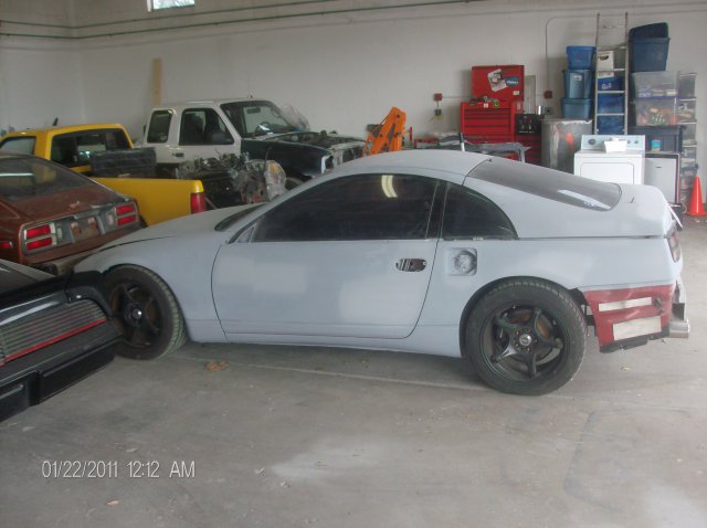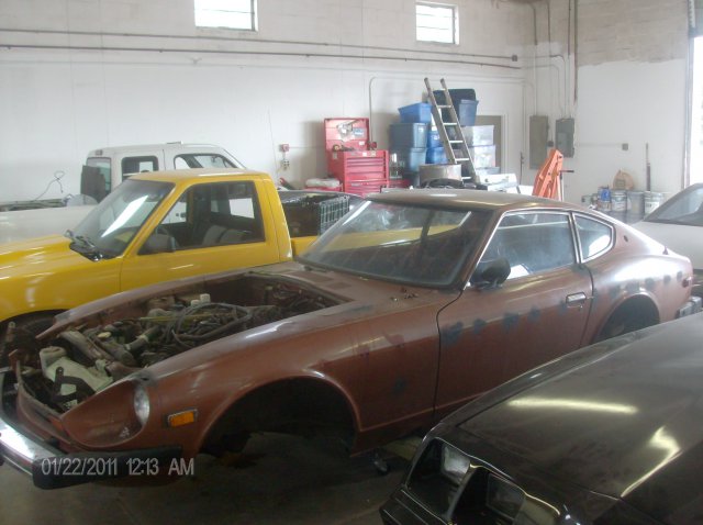 Picture update: 1/23/11 Z32: I went to the shop today to check on/play with my Z32 before work. It is a 91' Slicktop. I've had it striped all the way down primed, smoothed, re primed, dried for 6 months, then wet sanded. It's at the storage shop right now in travel form with glass and lights installed. I will bring it to the main shop on Thursday to pull the glass and lights, strip that last bit under the rear lights, then let the painter take over. Before anyone asks I requested that the lower valance area be left untouched for me to work on. I never got around to it. I'm such a slacker. 77' 280z: Here is the new 280 that I picked up. No interior. No drivetrain. No suspension. Good motor. Good wiring. The chassis is rust free with the exception of the floors. They will need patch panels. All of the other damage is isolated to replaceable(non welded) panels. OMG No rust in the dogleg / rockers! 73' 240z: Ah, Here is the sacrifice to the Z gods. My parts car. Everything that can be striped and reused by the 2 280's will be kept and everything else will go up for sale. Bumpers are OK but I've see much nicer. Interior is Fair for a 40 year old car. Carpet is junk. Console is not cracked but dash is. Carbs have been rebuilt. Driveline and suspension are complete. Chassis is shot. Amendment to "The Plan": <--- told you this happens a lot. The 77 will be getting the suspension and drivetrain from the 78 and will be built up with the stock L28. The best condition parts will go into it after a good freshining up. The 78 will get the suspension and drivetrain from the 240 to get it rolling. The 240 will either be scraped or turned into some odd creation yet to be determined. This will give me 2 running 280's. Then the modding will start. Ron