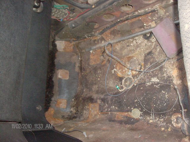 Small rust update The good: I pulled the carpet and the false floor out to check everything out and it turns out the floors are in great shape. What I thought was rot at first turned out to be the sound deadener peeling up with what looked to be kitty liter under making the crunch noise when I pressed on the carpet. After some metal prep and some POR-15 the pans should be good as new. Besides the surface rust this chassis is turning out to be quite a gem. The bad: Something in the wiring is stopping the starter from working. Even after fixing the obvious wiring problem the ignition will not trip the starter. I re-wired the push button to try to get it started but the engine won't turn over. I will put a wrench and a breaker on the crank pulley bolt to see if the engine is seized as soon as I pick up some of my missing tools. Plan changes: (<- I do this a lot) Depending on the outcome of the engine test I might be swapping sooner then planed. In the mean time I will be stripping the interior down to recoat in POR15 as well as add new sound deadener in prep for its DD duties. I plan to keep this car for a while so the more rust proofing that can be done the better. Any questions or comments are welcome.
