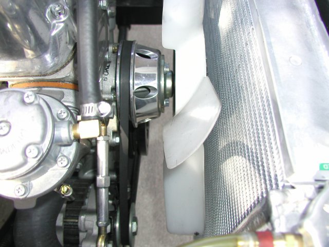 The ignition is an E12-80 “matchbox†distributor with a Flamethrower coil. The plug wires are NGK. The distributor was rebuilt as part of the engine refurbishment. Note the 10AWG (black) wire attached to the vacuum advance. This wire home runs to the ground buss. The headers are MSA’s 6 into 1 with a ceramic coat.