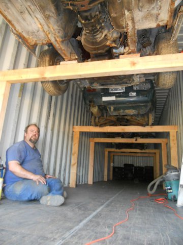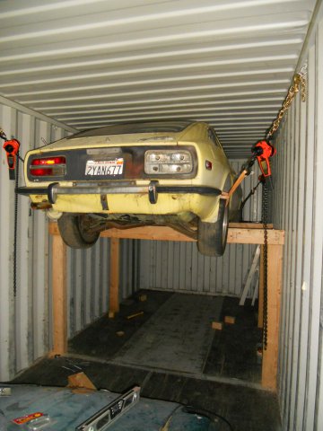Truthfully, if you can get the back portion on the railroad ties, personally I pick up the radiator support and walk onto the trailer as it's backed up under the body. If you are speaking of spring spacers, you can block the struts solid by assembling the top section over SCH40 PVC pipe that fits over the strut piston rod. Assemble the top spacer/spring perch and they are solid. But make sure you tie it down TIGHTLY so they don't jump off your spacers. Same for bigger pieces the diameter of the springs. But I've done the above procedure at least half a dozen times. I get cars without suspensions offered all the time. It's easier if you have a regular utility trailer actually, as without the open middle section, you can do the same thing with a floor jack, or wheel dollys. (you can see them in one of my photos!) Really, the tub is not all that heavy, getting four guys to lift it really isn't out of the question. a Couple of 4X4's will support a non-stripped Z. With a sturdy Oak Tree Limb, some 4X4's, 4 10' straps and a couple of chainfalls you could suspend it altogether and drive the trailer under it!