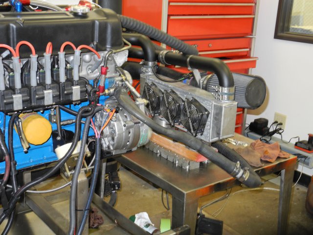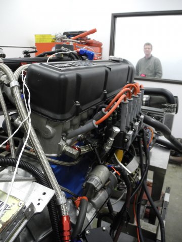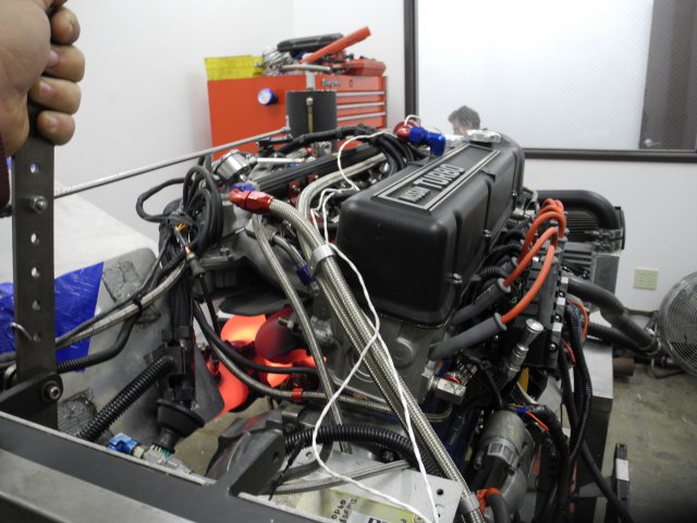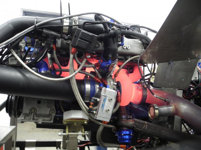 1. So many assumptions... 1) The hosese on the dyno are supplied by the DYNO. Those ribbed reinforced hoses you see? Those were brought TO THE DYNO by Jeff and I. They were confiscated by the dyno owner in lieu of some dyno time he liked them so much. There WERE 4 sections like that, but one was absconded with hence our using an outlet hose on the inlet. There is no spring in it, and that indeed is what was needed. DO NOT run a lower radiator hose without an anti-collapse spring in it!!! 2) Wastegate plumbing incomplete? LOOK AGAIN! The downpipe is turned at a 45 degree angle relative to where it would be in the car. The wastegate fits just fine to the clearly visible plugged connector on the downpipe when it's in the car. 3) Oil cooler? Oil throwoff from the mains and rods was around 100C. Sump temperatures were slightly higher. We were doing cooling systems tests holding the engine at steady state to check for some things. The cooler stayed in the car...for a reason. We learned more without it on the engine that we would have with it on the engine (similar to hooking up the head to the pump inlet and being able to block it off during testing.) BTW, do you need an oil cooler with 220F Oil Sump Temperatures and 170F CHT after running for 5 minutes at 5000rpms steady with XXpsi boost and making a load over 390ft-lbs of torque? 4) It looks like a stock block, doesn't it? Try gettting the conditions in #3 above to happen in a bone-stock F54 Block, or N42 for that matter!