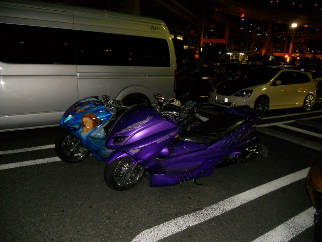 Target of Opportunity... saw them of really high quality (Not to mention they had the proper Watanabe Crest on the valve caps...) so I HAD to get a set. Next time, the matching set of valve stem caps GOES WITH ME before going in for tire checking and rotation. Someone saw them the last time and apparently needed them more than me. And that was in 1992. It's taken me a while to find them again...and there they were on a blister card hanging in a parts store! Of course the lightweight separate conical washer lug nuts were out of stock in Nissan Thread (plenty of 1.5 Toyota Crap...) so no extra set of those. Damnit. As it was the bill was 24,000 yen and I only left the store with one medium sized bag, and I will not be anywhere NEAR my weight limit on baggage going back home! Now, if there's time to go to that shop advertizing the G-Nose Parts I could rememdy that 'excess baggage' situation...