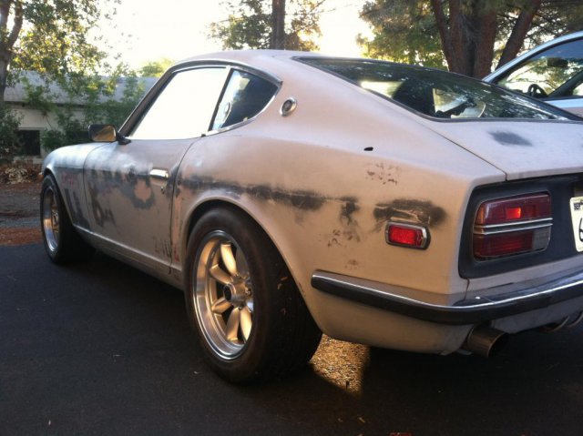 Fullauto- I'm looking for a pic for you on the belt..... I just measured the orgianl route minus the AC and went through a bunch of belts at the part store until I found the right length. Mafia- I don't remember the fitting size.... I just grabbed what looked right in my head, LOL. Midterm impression updates- Got a chance to drive it some this weekend, not real hard, but moderate pace. The car is freakishly fast, pulls very hard and just never runs out with very long legs. The shift pin clears the center consol without modification. The LSD 3:70 I swapped in is perfect IMO. I had an exhaust leak around one of the V band connections from the header but a simple readjust and retightening solved that. Oil leak at the oil pressure adapter...... Made a gasket and its now dry as a bone... should have made a gasket the first time. Gas gauge reads backwords (empty reads full, etc), but I put in 3 gals and it didn't come off the F mark..... is it possible I have the wires backward on the sender????? Next up is to finish the exhasut, I hope to have it to a shop Tues afternoon. I used some marine plywood for now to cover the spare tire hole over the fuel cell..... I will have a custom aluminum plate made soon with an access hatch for filling when i have some extra cash. Guages work minus tach and speedo. I was going to keep it all dastun but now I'm on the fence.... I can swap to Autometer for about the price of the Datsun conversion (suggestions welcome) All in all , no regrets. This is going to be the most fun I have in a car for quite some time.. Thanks to all in the Hybrid family for support and help along the way. I will post more pics and video along the way. Jim -