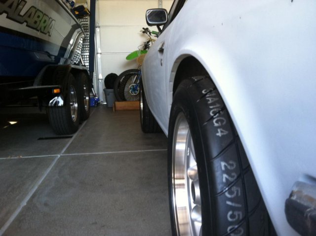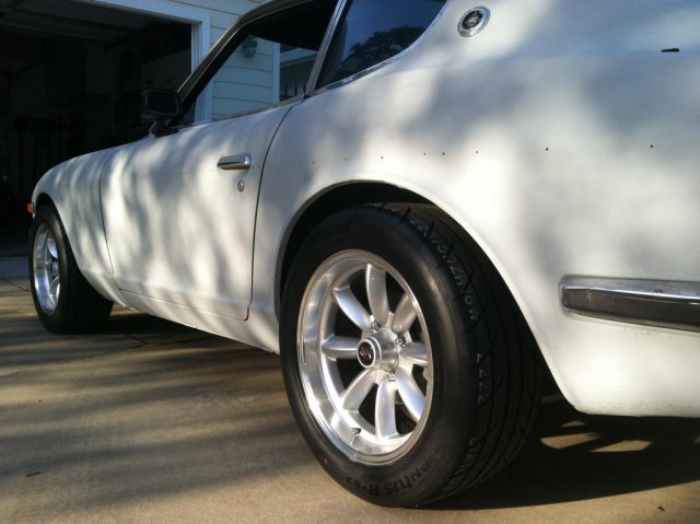 19. I just installed my 16x8 +4 rotas with 225 50 16........ I have the front AZC performance springs ready to install (just need some time) and a set of moog chevette springs that I need to cut down and install as well. Dave at AZC still had fronts in stock at 10.5 inches of free length for a "stock 240 ride height" and I'm going to cut down the rears to 12" as a start point for the rears based on JC stickie and tokico 280 springs......... With my stock 72 240 springs and blown struts I have no current tire rub but the gap is a bit large. I'm going for a stock ride height first and some spring settle before I attempt to drop as it appears there will be a fine line between the magic height and dreaded tire rub. Any advice on the initial chevette spring cut is welcome from any of you with experience. Thanks. Jim