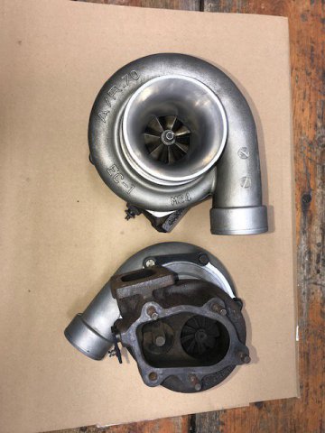 My 2 cents…. When selecting a turbo, as mentioned above definitely get one with a water cooled center section. If you can afford it, also get one that has ball bearings rather than a sleeve bearing. They last longer and you typically get the latest technology sinc turbo manufactures are putting most of their r&d into ball bearing turbo’s. If you already know this then please disregard my comments. Making horsepower with a turbo is not a function of psi. Psi is essentially a measure of resistance. It’s all about volume of air flow. Not pressure. For example, turbo A might flow lets say 35 lb/min at 17 psi while turbo B might flow 50 lb/min at the same psi and at the same efficiency island. The difference in these turbo examples are typically their size and technology. Flow maps will show you the cfm at various psi for various efficiency levels. Try to match your turbo selection to the cfm (at a streetable psi) required to make your hp target. Then there’s lag to consider. As has been stated above the turbine housing size will affect lag. The smaller the a/r the quicker the spool up but at the same time a small a/r can restrict high rpm performance because of exhaust pressure. I’ve found that a small a/r turbine housing is difficult to drive because it has so much bottom end at the expense of the top end. It’s a matter of preference. I went from a T3 .63 a/r to a T4 .82 a/r. I didn’t notice much of a change in the bottom end but I did notice quite an improvement in the midrange and top end. Again it’s a matter of preference and driving style. Also take into consideration the cfm flow of your head/cam. The cfm of your head and cam (that’s a whole other discussion) will give you a ball park of the max cfm your engine can move which in turn gives you an idea of the turbo cfm your engine can handle. Too big of a turbo and you’re adding more flow than your engine can handle thus creating flow resistance (unequal pressure before and after the turbine housing) while typically introducing increased turbo lag. Too little and you’re leaving hp on the table. Simply, it’s about the amount of cfm required to meet your hp goal, and whether or not your head/cam can flow those cfm numbers. Then select a turbo that makes that amount of cfm, at a streetable psi, at the sweet spot or close to the sweet spot of the turbo’s flow map. And lastly don’t forget to port your turbo exhaust manifold especially where runners 1-2-3-4 come together just before the exhaust flange. The trick is to get everything to work together in balance. Good luck.