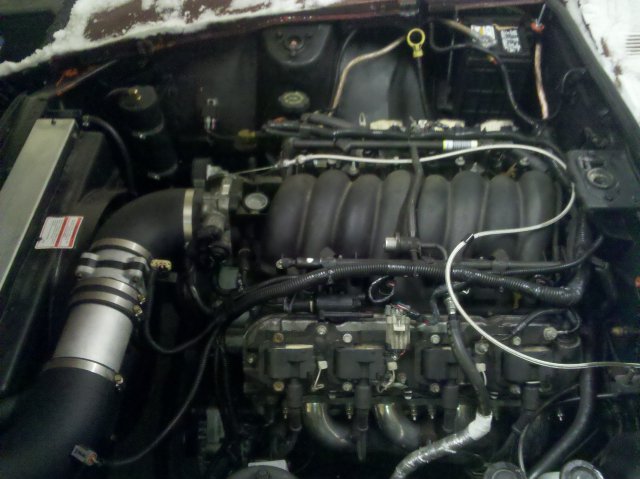My original Z, a '78 in beautiful factory metallic blue, suffered a fatal electrical fire (internal battery short, fire investigator said) in October of '09, so eventually, a replacement was had. A fellow in TX had a "mostly rust free" '75 in Maroon. Shell only, with aftermarket wheels. For $500, why not? It was a real doozy. There was also a hole in the passenger footwell (which he had alluded to), some minor rust on the front right quarter panel, and as it turned out, all over the seams for the floorpans. Also, the rear strut braces. Due to my boat (USS MISSOURI) being gone for most of the year, I gave the car up to a local speed shop and waited. And waited. And waited. Nine months later, I finally took delivery. The tach isn't in, the speedo sending unit isn't working, the heater doesn't work, the turn signals don't work, and it goes like a bat out of hell Drove it home tonight in the brisk New England air, ambient temperature 14F. Surprisingly, the Dear-God-These-Are-Summer-Only (Dunlop Direzza Sport Z1 Star Spec) tires actually bit around 3rd gear. Didn't do any hell runs to avoid attracting imperial attention, but anything below 5th pushes you back, and past what I assume is about 3K RPM, glorious, glorious noises ensue. Fine, I lied... on the onramp I nailed it in 2nd and after it decided to go straight, I snagged 3rd (traction, yay!) and watched as headlights behind me disappeared. Probably only about 80 MPH or so if I had to guess, but getting there is such a rush. So now, specs: '99 LS1 w/ T56 JTR CAI Sanderson shorty headers Texas Speed ported LS6 oil pump South Bend Stage II clutch Stock rearend, w/ RT Diff mount JTR radiator w/ Lincoln MK VIII fan Stock ECU w/ Wait4Me Performance tune Speartech reworked harness Stock rear brakes, Brembos in front w/ Hawk HPS pads, Russell braided brake lines Painless 18 circuit wiring harness Tokico Illuminas Urethane bushing kit Camaro fuel tank, with Racetronix kit Centerline 16x8 +0 offset (those also took about 6 months to snag...) Total price was, um... probably pushing $11K all said and done. (and it still needs paint!) I love it!