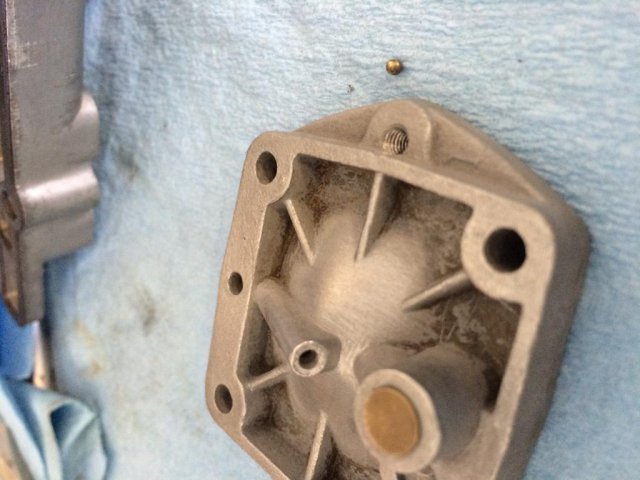 Okay, so I tore down the #1 carburetor and found that the pump body had disintegrated, leaving the check ball floating in the bottom of the float chamber. When I ultra-sonic'd the ass'y, the brass bushings fell apart, so I had to JB weld the small brass peened fitting back in. I didn't however, JB weld the brass bushing seen below. More work! For anyone wondering what the internal pump body ass'y looks like (the small washer is part of the accelerator pump plunger/rod). However/unfortunately, I'm still pretty sure that this wasn't the cause of major hesitation (although it certainly wasn't helping at all. @JMortensen ~ Smaller than 40's on the pump nozzle? Pilots up from 57.5 to 60 ~ I believe the jetting parts list notates that they increase in increments of 5... not sure if that's .5 Cylinder 1 plug = wet... Regarding the Wats being sweet... They are. Trying to not worry about damaging my newly built motor with all of this rich-running carb-tuning. ~C