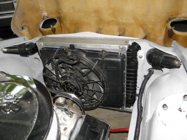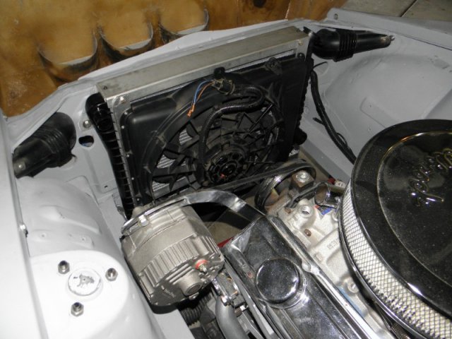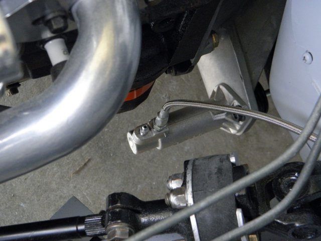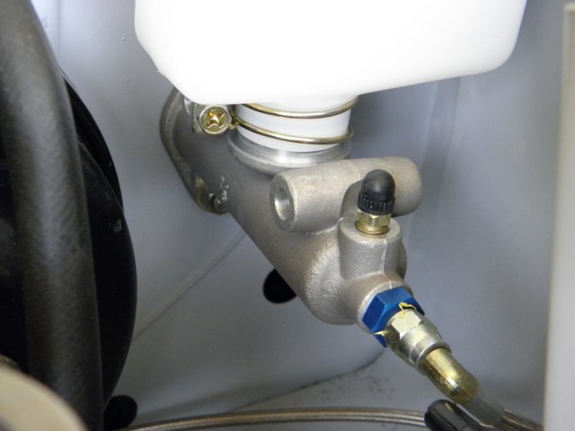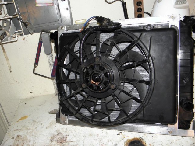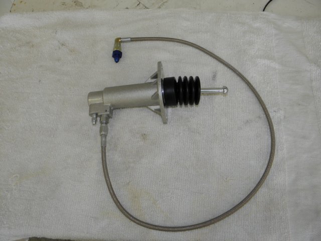 Progress on several fronts over the last couple of weeks. First I wired up the dual speed radiator cooling fan with the help of this thread... http://forums.hybrid...__1#entry921201 ...and it's associated links. I got all of my parts at the local Pick N Pull. Dual Speed Taurus Fan $35 Volvo Fan Relay w/plugs $10 BMW Temp. Switch w/plug $ 7 Total $52 Next I went to work on the hydraulic clutch system. The Tilton .850 master cylinder, ($85 from Summit Racing)... ...connects to the Camaro slave cylinder ($35 at O Reilly Auto) with a blue -3 an coupler ($2.45 Summit), a 32" -3 an 90 degree hose ($17 Summit) and a 'GM clutch cylinder to -3 an' adapter ($32 Summit). Total cost about $90. Very clean when installed.