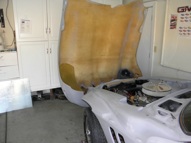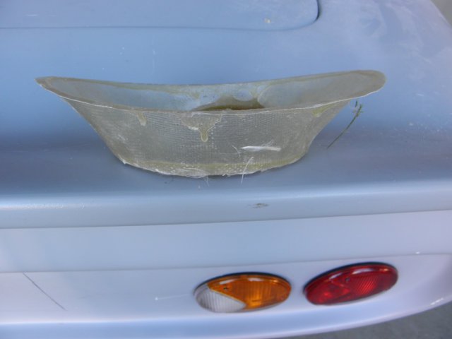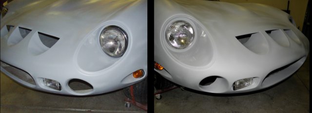 Here's what I'm trying now. A removable fiberglass inner fender ... ...that will block off and protect the light assemblies from road debris and finish off the wheel well when the bonnet is down.