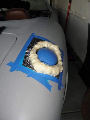 Thanks Kito. I agree. The VR body is sleek, elegant and unique. I know it's not the popular view, but I like the look of this roadster much more than the original fastback Ferrari 250 GTO. If you'e truly considering this re-body, just remember that it's not a bolt on affair. You'll have, in my opinion, triple the amount of work over your engine/tranny swap. I thought I was through with mods a couple months ago, but I keep finding areas that just don't feel finished. For instance, I spent some time today trying to make an inner fender for the front end. The headlights, turn signals and front vents are visible through the front wheel openings. Here's my current solution. Sorry pics won't load. I'll try a new post.