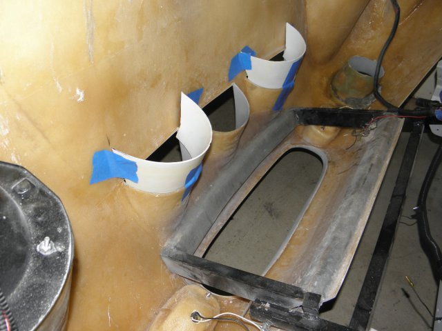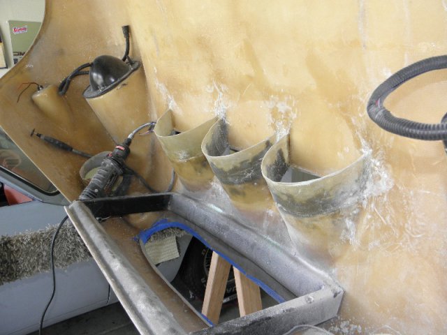 Made a couple of forms from a 5 gallon bucket to extend the scoops under the hood. Wasted most of the bucket using the trial and error method and didn't have enough left for the third form. Have to wait for another empty bucket.