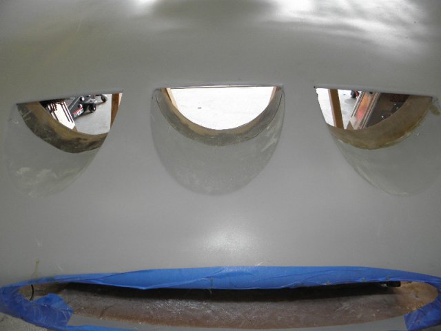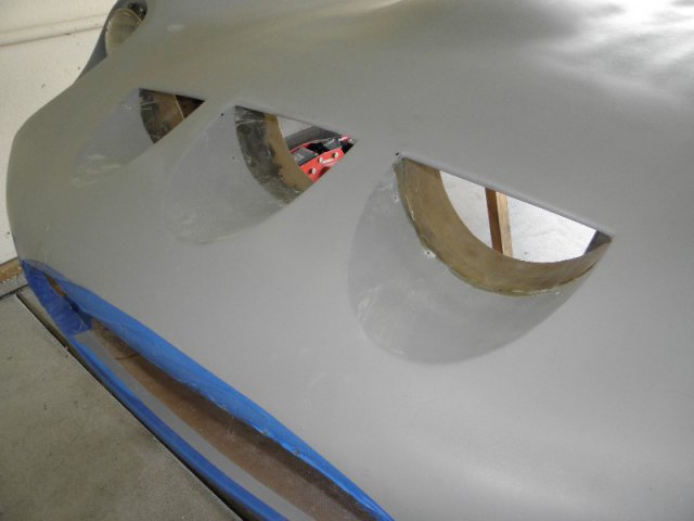 I was able to spend a good chunk of money today on parts from Summit Racing. Several are on back order, so I'll continue working on the small body mods while I'm waiting. Continued to round out the lower vents. They're not quite finished yet, but they're close enough to the look I'm aiming for, to get a little primer. I'm going to extend the "sugar scoops" 1 1/2 to 2 inches under the hood in the same way. I like the 3D look the extra depth adds.