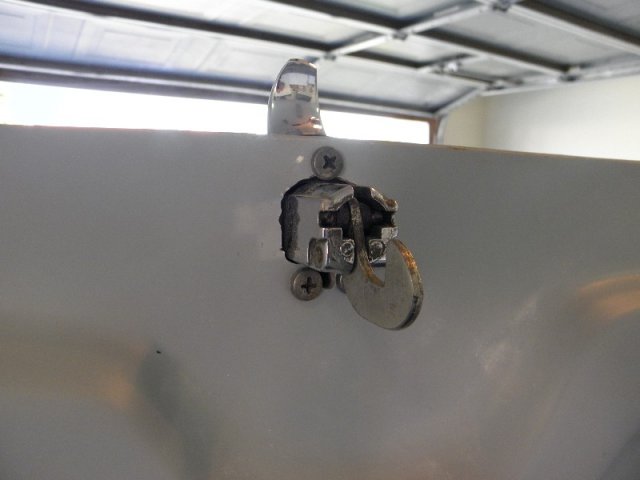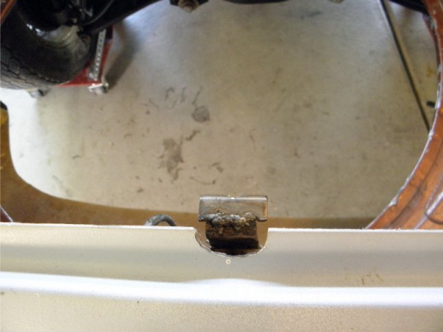 Nice day, and since I only worked 'till noon, did a little sanding and filling. Another pass with light filler, then I'll trim the back off. Attached the trunk latch... ...and made a striker plate from a piece of scrap steel.