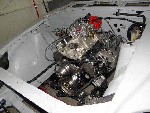 WOW!!! Summit Racing is serious about getting orders out quickly. I put the order in at 2:30 yesterday afternoon, and everything that was in stock arrived by 12:00 noon today. And that was using UPS regular ground delivery! I guess when racing is actually part of the business' name, you gotta be fast. I can't stop staring at my shiny engine... ...it just barely fits under the hood.