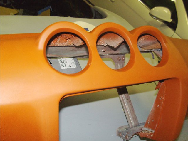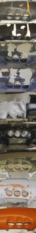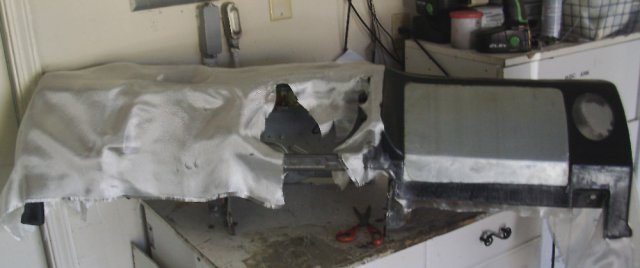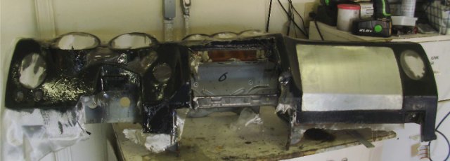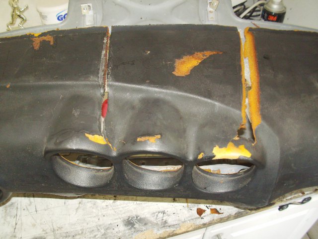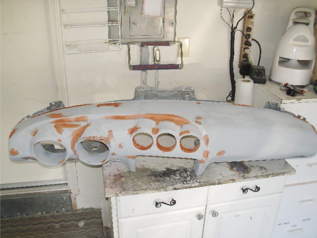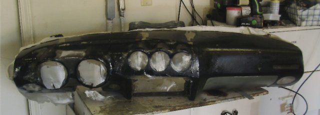 Here's my version of time lapse photography. The pics between the foaming of the cracks, and the laying down of the fiberglass cloth, depict the use of the bumper repair material from my attempt at the "cheap alternative". If you're gonna cover with fiberglass, just sand the foam flat. I used the fiberglass cloth in hopes that I'd get a seamless finish. But I found it didn't stretch enough around the gauge housings, and I ended up with several weblike voids that had to be cut out later. Next time I'll try fiberglass matting, to get into the tight spots, instead.