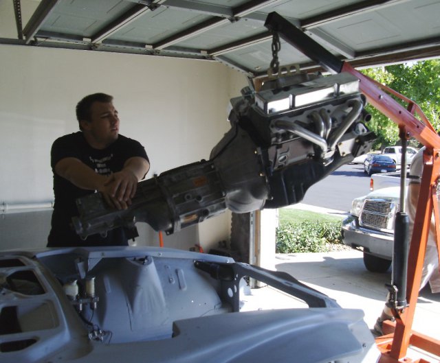 OK... it's in!!!! Took a little help from my son Nick and his fiance' Channing, who took the pics. Went in easily. The JTR people sure have the bugs worked out of this procedure. Fits like a glove. I've been heading toward this day for so long, I'm not sure what I want to do next. It'll come to me.