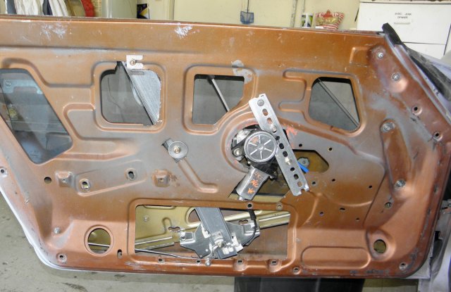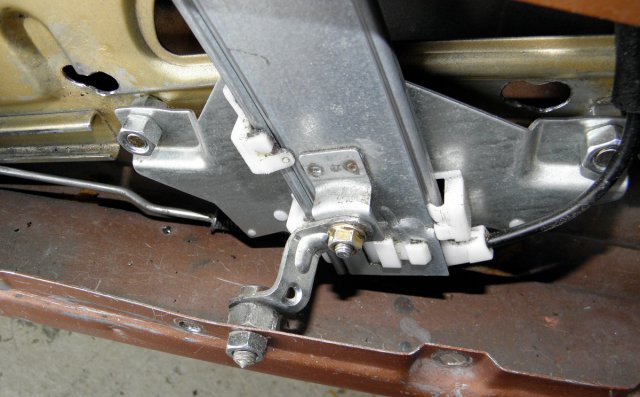Okay. So, after what amounts to three full days using the "trial and error" technic, I've finally installed the drivers side regulator. Rather than explain what I actually did during this arduous process, I think it would be better just to post pics of the final result, with a little commentary. As they say, a picture is worth a thousand words. I compared the curved path of the Camry actuator track with the door's outer guide track. It doesn't take much force to bend the actuator track to match the guide track. In fact the actuator track is so thin it would be very easy to put a kink in it if pushed on too hard. Cut off the old mounting brace. It's unnecessary and won't allow the track to fit. Using the two videos of operating windows in this thread, I approximated the actuator tracks upper mounting point. Getting all three tracks (actuator, outer guide and inner guide) to line up took forever. Here's the final positioning. The window frame attached to the actuator. There's a nut spacer between the window frame and actuator. The Z bracket will be replaced with one that doesn't require a spacer. I cut too much sheet metal, and had to add the strap in order to mount the motor. I ground the lip down on the top of the window frame in order to clear the back of the motor during operation. I hope this helps. Here's how it turned out. Power Windows Hopefully the passenger side will be easier.