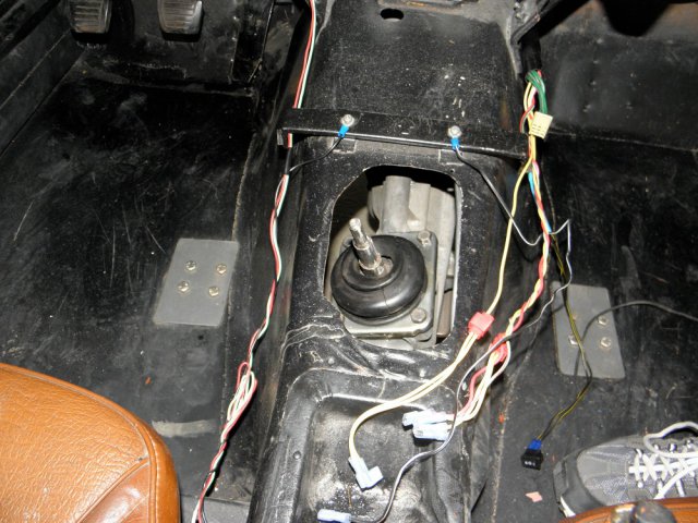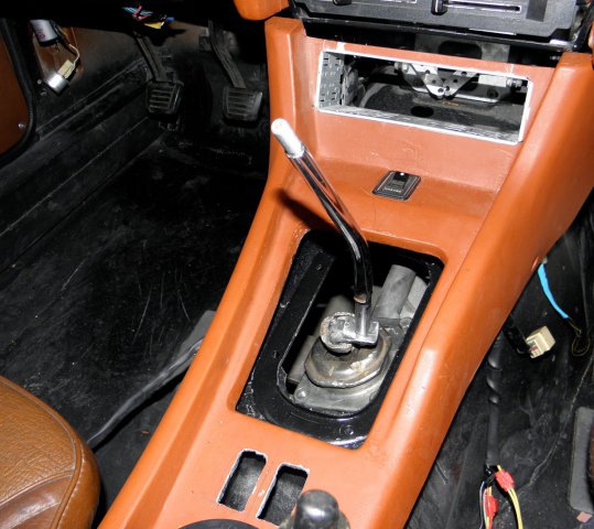 After hours of trial and error, the gear shift lever is in it's final position. A small metal plate is welded to the shortened shift post. The gear shift lever (from a Datsun 510) is bolted to the plate. The lever has flat sides from the bottom threads to just below the bend. If it starts to spin in the bolt hole, I'll add some flat stock on top of the plate to keep it straight. It looks pretty simple, but it took forever to get the plate angled just right. Too much twist one direction and the lever was hitting the console in 1st,3rd and 5th gears. Too much in the other direction and I'm knocking my drink out of the cup holder in 2nd, 4th and reverse.