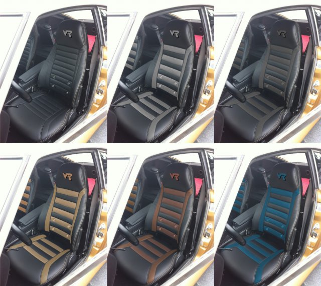 Exciting news today. I can get new synthetic leather seat covers with a custom VR logo from the guys at Interior-innovations! for a great price. Just gotta decide on colors. Some photoshop magic using a couple of their sample colors. I like the high back Z seats with the two tone european style... or something like this maybe...