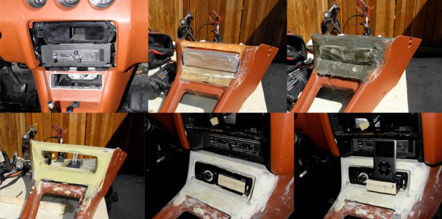 I decided on an inexpensive stereo for the time being. Basically all I need is a radio for a ball game and a way to play my ipod music. I chose an inexpensive Boss unit with a pop-out ipod dock... no CD/DVD player. Once it arrived, I immediately saw that in the stock mounting configuration, my ipod would hit the plastic heater surround. I modified both the console and the surround to move the stereo forward. It will even take an iPhone now.
