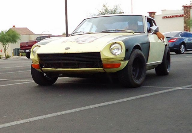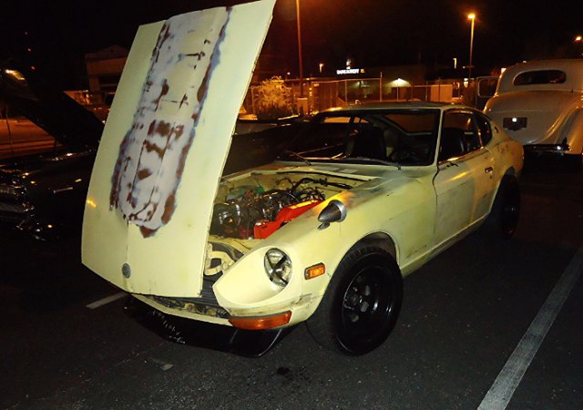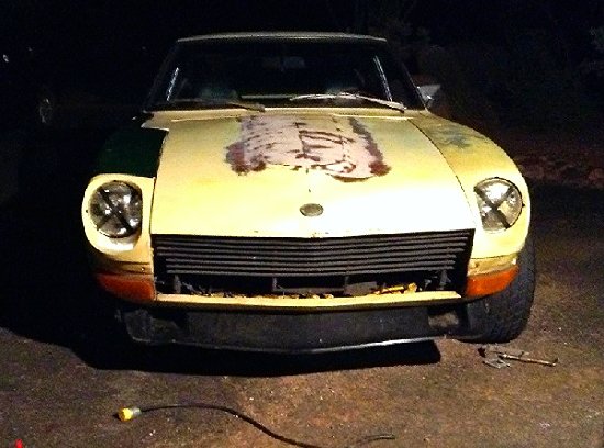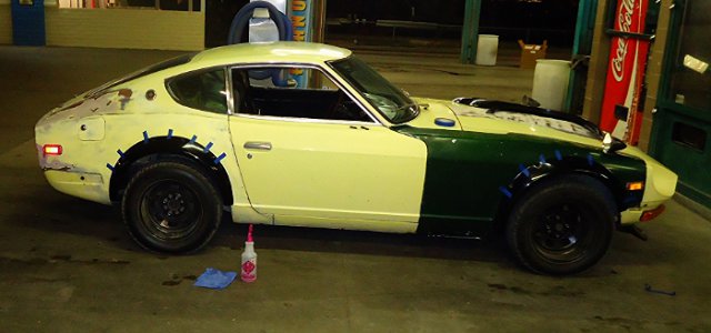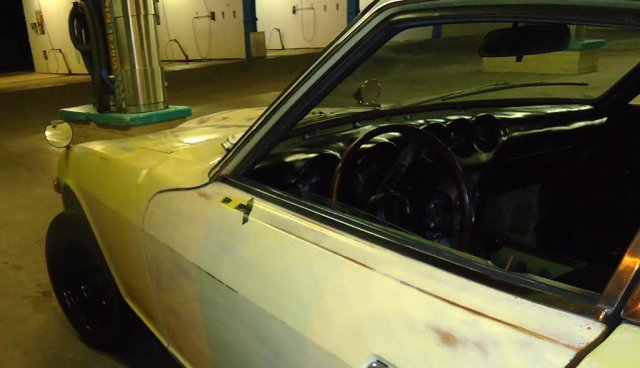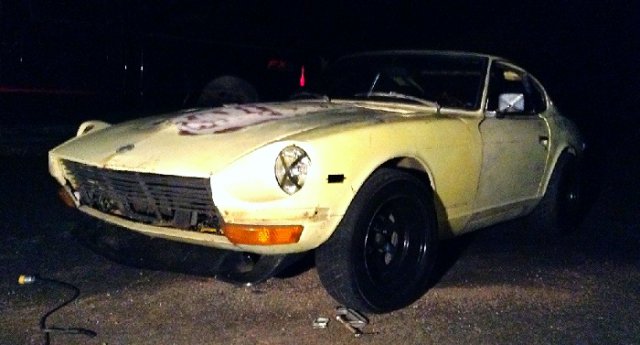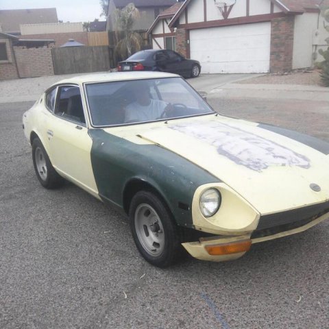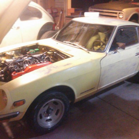 Hi everybody on HybridZ! I picked up my first Datsun about 3 months ago. It was in pretty bad shape, not running, and the interior was completely gutted. I Talked the seller down and got it for $1300 cash. . The motor is an L28e and it also has a 5 speed swap. It has SU carbs on her. I had to clean and balance them, clean the fuel tank and the dizzy shaft was installed 180 out. Got all that fixed and she started right up with a little fuel in the carbs. Suspension was done and would bottom out on a regular so I put some used, but much better, struts on her. The body is rust free and fairly straight with the excetion of the roof, a fender and the hood. Nothing a lil bit of elbow grease and some TLC wont take care of. Ive slowly been going through her replacing wat needs to be and re filling her with fresh fluids. Replaced the clutch kit, starter, spark plugs & wires, dizzy cap, K&N filter, 20w oil in the carbs, ngk copper plugs, new oil pan gasket and valve cover gasket, brake pads, bleeder screws, motor and transmission mounts, and bushings. With what little work ive done on her she has come back to life. it ran ok when i first got her up but now its like a totally different car and is so much more responsive! The brakes were a little tought at first but with a fresh bleeding of the system they came back. The car also would not go into gear so i had to adjust the clutch and it shifts smoothly now! It came with almost all its badging and the dash which was removed and cracked like crazy. I sanded down the "mountains" that the cracks had formed and leveled it off as best i could. did some bondo work on it and now i have a smooth dash that is at least presentable lol! Rattle canned the dash black, looks pretty good IMO. the wiring on the vehicle looked like a rat nest so i just took everything out rewired it myself and now i have my home made harness that works and didnt take long to make . I still have a decent amount of wiring left to do though. The tires were bald and had slow leaks to i had to replace em. I just picked up a set of wheels with tires and got a great deal on em so i threw it on some racing steelies. Looks nice and a little bit aggresive at the same time ! My plans for the vehicle as of now are to get my flares installed, my BRE air dam, and get a wing aswell. Coil overs, paint, interior, racing seats, carbon fiber hood, oil and tranny cooler installed and mounted. motor wise i just want a mild build. My goal is anything near 200-250hp to the wheels. I was thinking upgrade carbs, cam, pistons, valve train, headers, intake mani, dizzy and msd ignition. Any help or advice would be GREATLY appreciated! ... Now for some pics. This was the day i brought her home. started cleaning her up cause she was really dirty Here is the motor after I got it cleaned and polished up as best i could. You can see the wiring headache I had to deal with. Installed the straight fenders. Here it is with the new wheels. Bart racing steelies, 14x8. offset unkown As she sits now. I will upload some pics of the interior and with the air dam installed asap. Will update as often as I put work into her. Thanks for looking and have good one HybridZers!!!