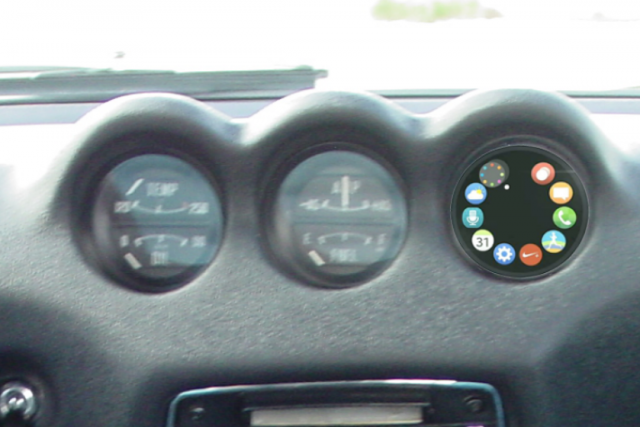 Has anyone done anything cool besides adding a boost, afr, etc gauge in hole for the clock which is usually broken in most datsuns? Ive read its about 2 1/16" which is roughly 52mm which is on the very large end for watches, maybe thats a personal opinion? either way there aren't that many smart watches that size but i was looking into fitting a samsung s2 watch in the hole which is just about the right size. Considerations / ideas 1) of course what watch and what functions would be coolest to have in the car (blue tooth, hands free, gps, G-FORCE METER other apps seems pretty cool!) 2) mounting, probably the most important part of all of this and really what im most interested in seeing what people have to say. Would like something slightly better than duct tape... was thinking of maybe finding a way to attach the straps behind the dash some way? or use some form of a plate that i can super glue the back of the watch to and find a way to adapt to the original clock, there's a sort of L shaped bar that is attached to the back of the clock which is what im assuming is how the clock mounts could be possible to make a bar like that? I have not spend that much time behind the dash :/ 3) The watch has the ability to charge wirelessly was wondering how people would go about trying to integrate that into the car? of course i could just plug it into the 12v cigarette lighter but want something a bit more integrated and I also use that for a radar detector haha Maybe just connect the charger to the battery through a fuse and a switch maybe? wont draw much power but would like to have the ability to turn it on and off. Also like to hear peoples idea on mounting on this? I was thinking just under the leather covering the side of the trans tunnel 4) if anyone knows of any other screen that size that can be hooked up to anything would be really interested! link to the watch - http://www.samsung.com/us/explore/gear-s2/?cid=ppc- Added some pics of a stock clock and a random dash i did a quick photoshop to spark some interest, thanks! after looking it over i might switch the order of the gauges to have a better view of it