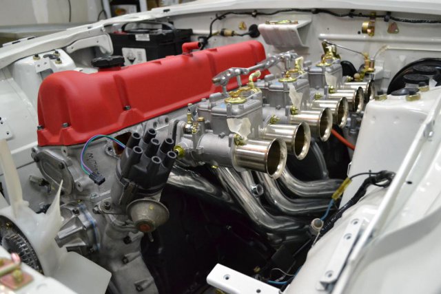 Motor finally showed up. L28 with N42 head 3.0L Stroker 89mm Cast Pistons L24 rods with ARP bolts Turbo oil pump 63DI 109 Hot B Cam Triple 45 DCOE Weber Carbs Port & Polished head Port matched intake 11:1 compression Dyno Sheet: