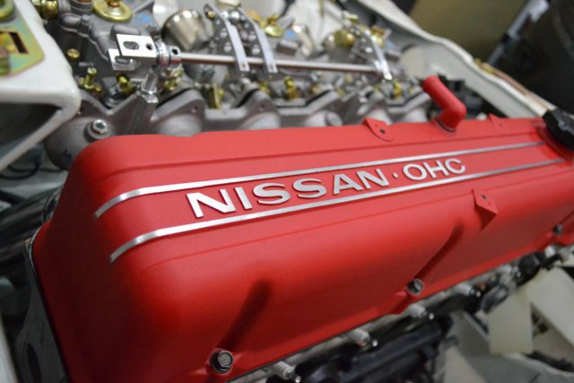 Thanks, the chrome vinyl has held up good so far. Its been a few weeks A little progress today. I received my custom plug wires, heat shield, manifold stud kit, and new valve cover bolts from Datsun Spirit today. I also installed my new 3 row aluminum radiator.