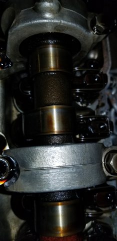 So I went out and got another Piston to replace that cracked one. It's not bad looking at all, I cleaned up my old pistons, and found that each was marked, proving that this engine had been rebuild previously as expected. I got the new rings and followed the instructions for install, on each of the pistons and then reinstalled them in the Block. I torqued them down to the ~40 ftlb of torque that was noted here on the forum. I then pulled the main bearings to check them for wear. They too looked like they were new, so I really don't think there were many miles since they last rebuilt this engine. The nasty nasty oil tells a story though. I'd expect, they rebuilt it, and with the cracked piston, it wasn't seating the ring and blowing oil. So they likely just figured it was a bad engine and not worth changing the oil and drove it till the cylinder head failed and all but melted down. It's the only explanation I can figure. These Pistons cleaned up well, but there was easily 3/16" of carbon deposits on them and all the oil passages were clogged. I cleared them with bailing wire and a small drill bit. there are marks and scratches all over so I wouldn't be surprised if this is the 3rd or 4th rebuild. Anyhow the Pistons and bearings are all back in the block with new seals. I'm waiting on new timing chain guides to arrive then I'll put together the front of the engine with new gaskets and proper timing. I have that copper gasket sealer spray I'm going to use. it's supposed to be really good. . I have a new tensioner, and a new chain, just to be sure. I'm going to try to find engine paint in approximately the correct bluegreen that these are supposed to be painted, and repaint the block, then piece it all back together. . I'll paint the pan and install it last. Phar