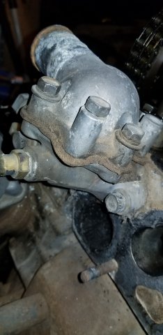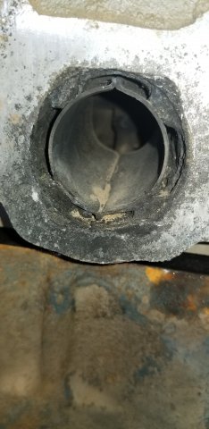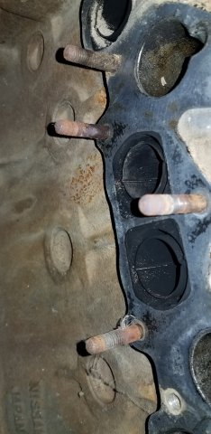 So, I got a chance to tear into the L28 to try to see what was going on with the low compression on cylinder one. I took off the Intake and the Exhaust header and the valve cover. I think I have a good idea what's going on I found with Cylinder 1 that the metal shield for the exhaust had cracked and was half missing. These are here to protect the aluminum head from overheating, which this one has done. You can also see that the aluminum had lightly melted patterning, to the gasket. Does anyone know if that liner is actually replaceable? How are these held in? Pressure fit? I checked the Valves and they look like they are set properly. The gap was fine on the valves and the cam looks fine. but I don't know how hard or worth it it would be to try to repair that head. The Valve is likely burnt bent or melted. I'm doubtful at this point. I might go ahead and swap in the E88 head, but that would make the L24 worthless. If I can find another L28 head I might do that. I was going to pull off the Thermostat housing, but the bolts seem seized, likely from the overtemp on the Cyl one port right below it. If I get another head I'll just snap the bolts if they don't break loose.