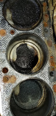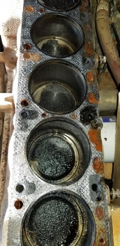 yeah I've actually got a spare block, so that's not really an issue. I did pull more of it apart this afternoon and oddly the valves on cyl one actually does't look that bad with just the head off. I haven't pulled the old valves out to check the seats so that may not be the issue. If that cyl one got too hot maybe the rings are toasted. The cylinder walls don't look bad, no scoring or anything. I'm going to pull the bottom apart tomorrow so we'll see what it looks like. I've got new rings and bearings already, so might as well hone and replace. I have to do all the seals anyway. What's the best way to clean rust out of the water jacket? There's a goodly amount showing. I could flush most of it out then hit it with an acid like muriatic, then flush it again. I don't know how well that would work.