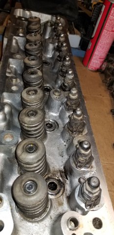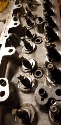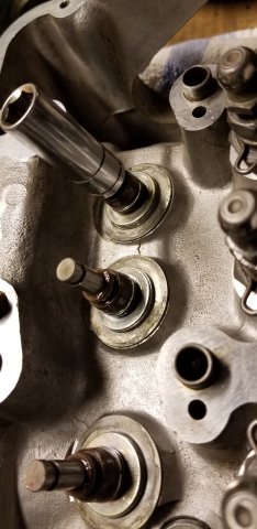 So I've been tearing down that head. I pulled out all the valves and it's a good thing too, there was a ton of dirt in the springs, even after I soaked the whole thing in a bucket. When I inspected the valves there was some scoring or almost corrosion I didn't like, so I lapped the valves and that cleaned those up nicely. Then I put them all back together with the springs and washers after it was all cleaned up nicely. I installed new Viton seals and pressed them all down to seat with a socket. of course bathing everything in clean oil for assembly. The springs and valves look much cleaner. Next I pulled the Cam and towers from the N47 and put them on. I had to move the little pins to the new head but that was easy. All the rockers and caps fit perfectly. it looks like the cam lash is still set good too. I'll adjust it after it's running. Phar