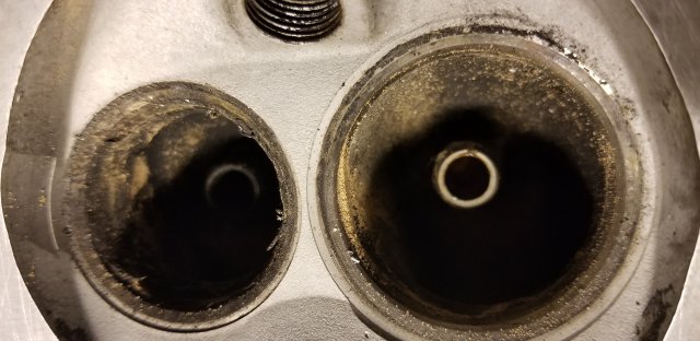 Yeah this one definitely snapped off. it was likely lodged in there causing the head to heat up a lot. I'm going to the junkyard this weekend to pull another head. I was reading the n47 or P79 might not be bad choices. I'm not going to turbo this. none of the others were loose. I have been soaking the water bolts in liquid wrench, hopefully they'll come loose, but if not, no big deal The P79 is supposed to have a really good quench pattern. They said they might have a p90, not a p90a, I'm not sure the difference there. I'm pretty sure the low pressure in that cyl is from the way over temp, it might just be a bent valve from the busted tube, or it could be something worse. I'll know more when I pull the old head.