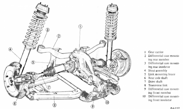 I was hoping to build up a turbo in the future. I was thinking that the KA would be cheaper to do that. I was thinking about an l28et but I really wanted to make my car different just cause, although I do really like straight sixes as well... I might change my mind when i get that l28 running (probably get it done this weekend) but I am not sure. I guess the money that I spend on the KA could be spent putting a turbo on the L28. I will think about it, couldn't start looking for the motor in a yard til this or next weekend anyways. Thanks again for all of the help with this, this is my first Datsun or Nissan and I'm still learning about 'em. off topic but does anybody know if the 280zx mustache bar and the 2 link mounting braces (I think that is what they are called, anyways #2 and #5 in the pic below) will fit my 280z? there is someone on craigslist that has 2 280zx parts cars (one manual 5 speed non turbo and one auto turbo) and I cannot find any s30 parts cars.