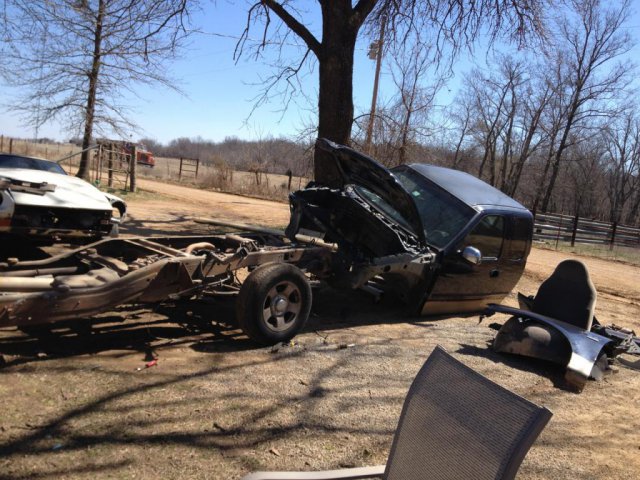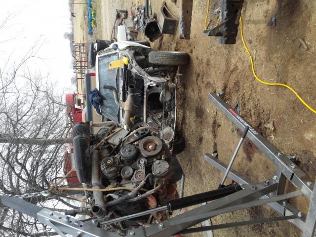 Update time. Spring break is over, brother and sister in law came over and got alot accomplished. Truck is stripped.. motor,transmission is stabed in the z "oh yea". Here is some picture's of the fun.. Here is after dash removed Everything tagged,labeled, and cataloged Complete cab wiring harness removed Complete engine harness removed We removed the bed and the cab that was interesting... Then we removed the motor and transmission together and finished stripping the wiring harness off the frame that controlles fuel pump, fuel emmission canister, and tail lights the moment of truth will it fit?? It does just barely not much room left... Here is where we had to leave it.. Now the real fun begins motor and transmission mounts, wiring the whole car. Im going to use all the wiring harnesses to run everything even the lights..