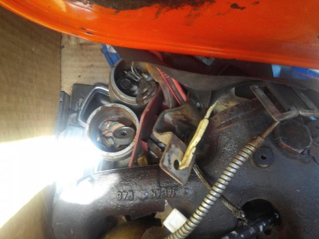 Update: Today was a nice warm day, after 7 days of snow, i was able to go out and get some pics of my last car. I also was able to see what new parts came with the white and orange car. Factory ac? Wow...im impressed. . Battery box looks good. Here is some of the new parts that came with the cars Complete engine gasket set Stock Rotors and drums.. dont think ill be needing these since ill be upgrading brakes. Dont know why but somone cut the rear taillights in half from drivers side to passenger side. Here is the rest of it. As far as i can tell its all the weather striping for whole car, what a score.. Box of goodies..even some money.