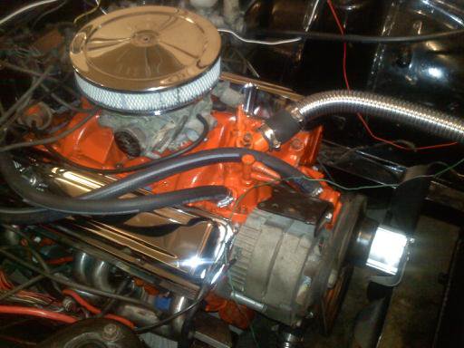 Still got to bleed the clutch and cap off some vacuum hoses on the q-jet but I am going to try and start tomorrow when I do not have any work. Wires are still messy but I will clean them up once I know for sure the wiring is correct. Dressed her up a little and what not.
