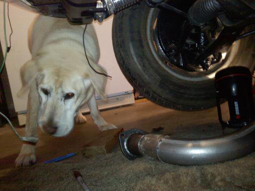 Well I was suppose to be done for this school year being my senior year but due to my engine ordeal I missed that date by a bit. Between school and my part time job it is hard to find time but any bit is for my Z. Definately lost a bit of social life haha. Anyways, Today was first day in a week I have had to put a good amount of time in, started and got half way done with exhaust. (Got it back to the diff with dual 2.5in and met at a Y pipe, eventually going to go to a single outlet). My 13yr old lab helping me out