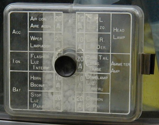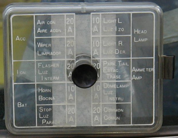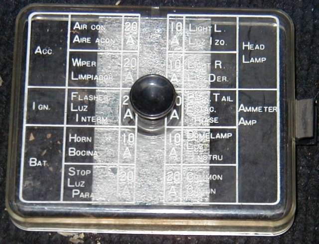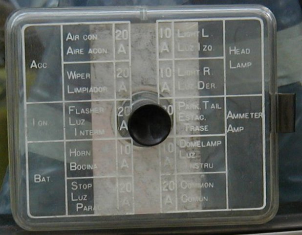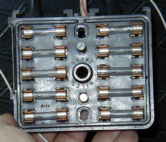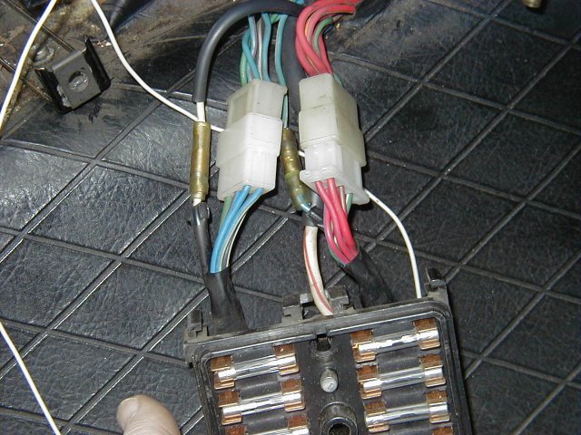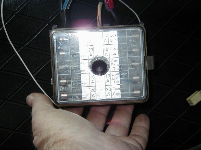 It seems that you don't really need these pics any more, but I'll post them anyway. Hover over the pics to see the file names. 73_fuse_cover_1 : Shows the printing that lists what each fuse controls. Probably the best shot of 4. Please note the tab in the top center that goes in the notch of the box. 73_fuse_cover_2 : Just a different angle. The printing is hard to read. 73_fuse_cover_3 : Another angle to try and capture the hard to read printing. 73_fuse_cover_4 : The white or silver is part of the fuse bog cover. 73_fuse_box_front : The front of the fuse box. Please note the wires exit the top near the notch. 73_fuse_box_back : The back side of the fuse box. Looks factory still. 73_fuse_box_connectors : Just the wire connections that plug the fuse box to the wire harness. The single wire with in-line-fuse looping to the right of this shot is the electric fuel pump fuse. We replaced the damaged fuse holder with a newer style. I think this was a last minute add-on at the factory to add an electric fuel pump for the late model 73 240z. 73_fuse_box_wires : The fuse box hanging from the wires. The wires are routed into the center console. The box mounts on the drive shaft tunnel where the center console meets the under-dash just below the radio and is easily accessible. 73_fuse_box_complete : The cover mounted to the fuse box. We have the dash and center console removed or out of the car while we are fixing various old-age problems and setting up for the track. Our wiring seems to be original and un-damaged. The switches and connections are all dirty. As we take apart and re-connect the different connectors, the assortment of things start to work again. Please note: The single white 20 gage wire is not factory nor going into the fuse box. We added it for the electric fan and switch. We will put the under-dash and center console back together when we feel we are done with all the little things.