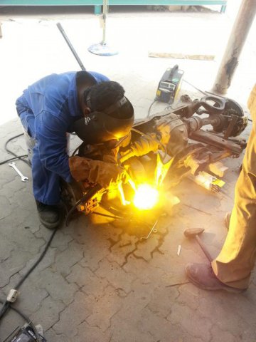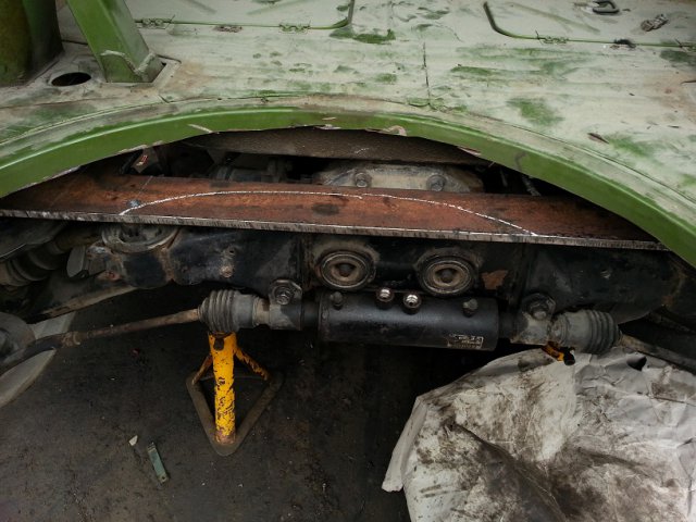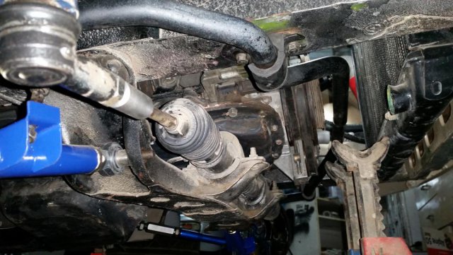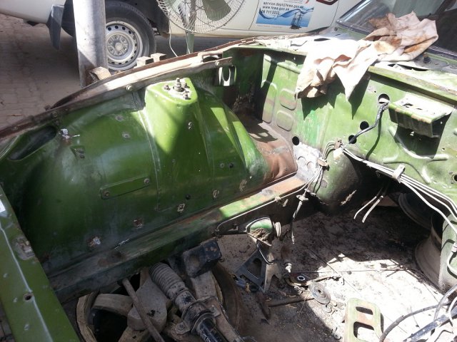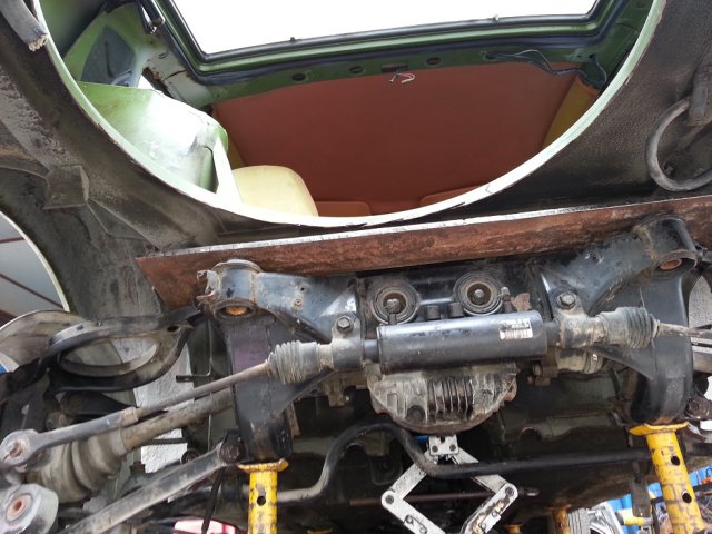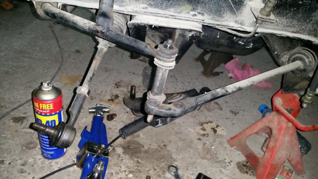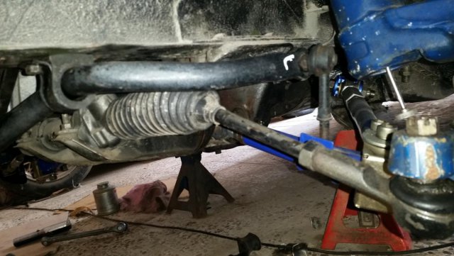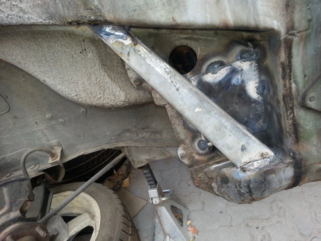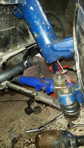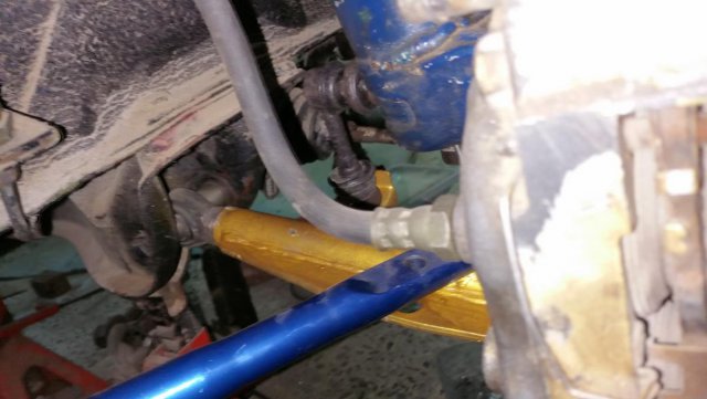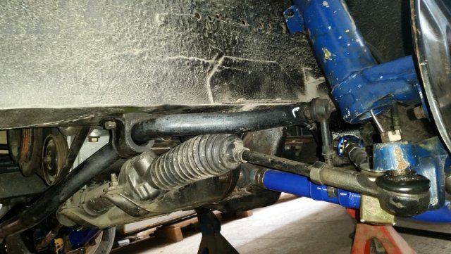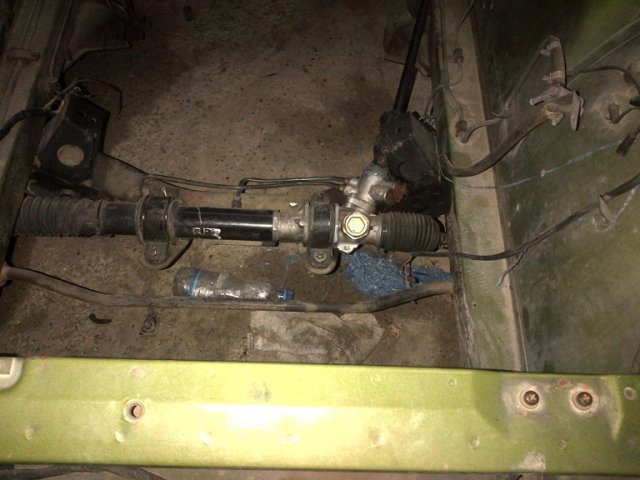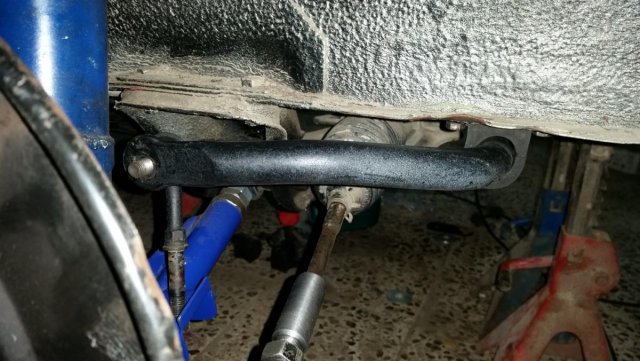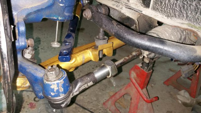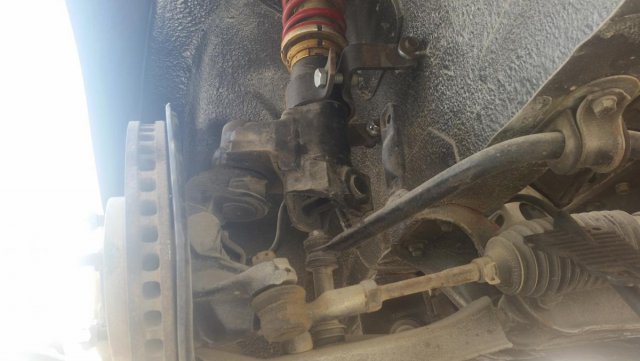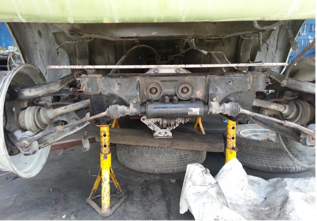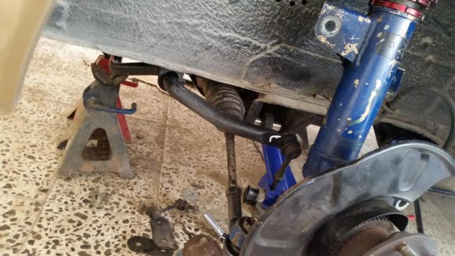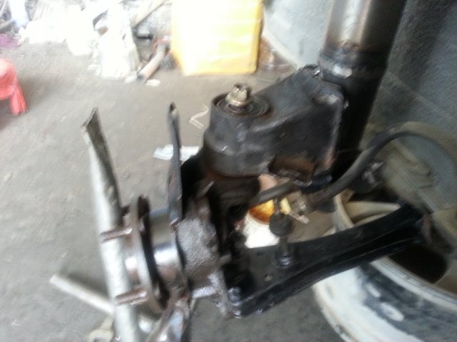 14. I bought aftermarket R32 front tension rods and nissan galoria aftermarket front suspensions. I modified suspensions upper part my removing top cup and machine plate same as stock size drill bolt holes then welding tack lock the bolts to not loosen when running. Fitted drums and brakes of r32 straight with no issue. Installed silvia aftermarket adjustable front lower control arms. They didn’t fit directly I widen the crossmember arm pivot points rack by around 7mm to fit arms’ pillowball. * Started the conversion to power steering gearbox from nissan. It fitted on stock rock nicely, but right rod was found short so I machined extension piece welded with right tie rod end. The stock swaybar not fitting with new modifications so I bought nissan slivia s13 front swaybar but it was wider than body by about 2inch so I cut it from meddle then shorten it from both side by one inch then welded it.