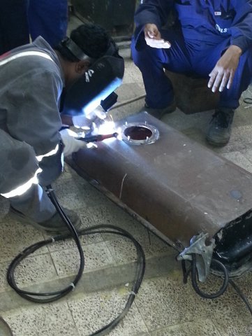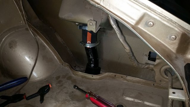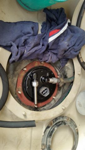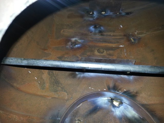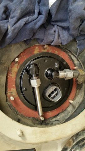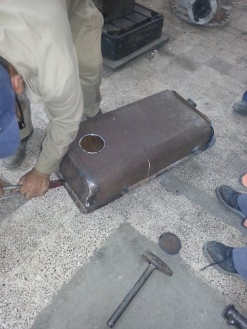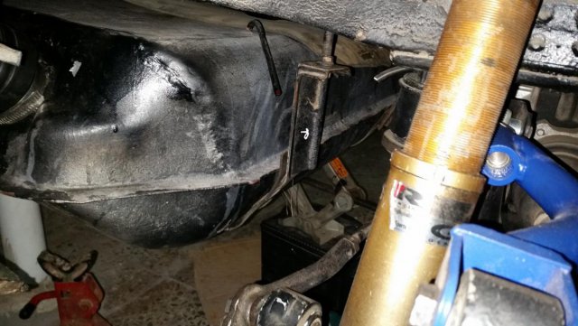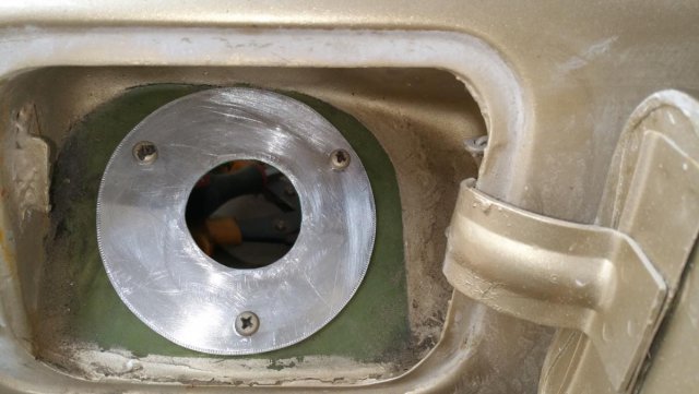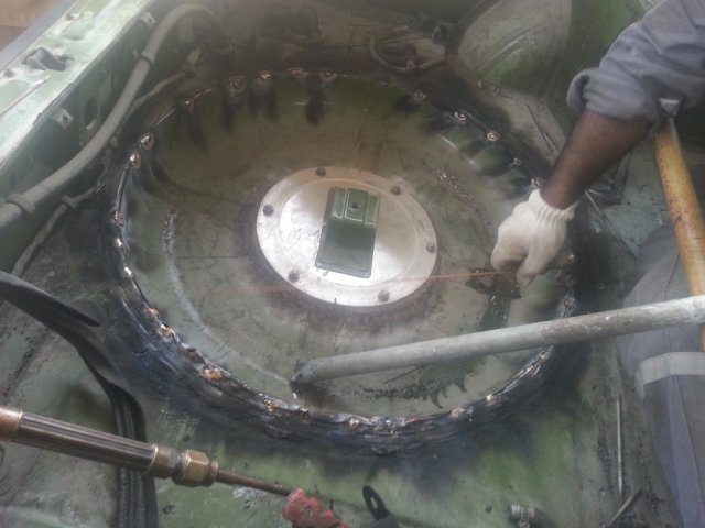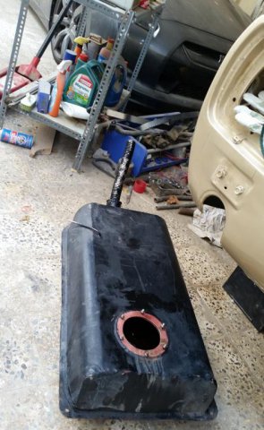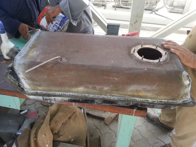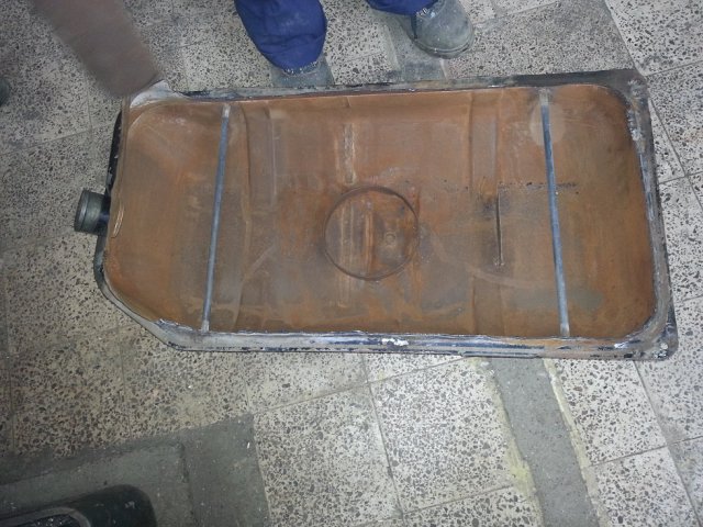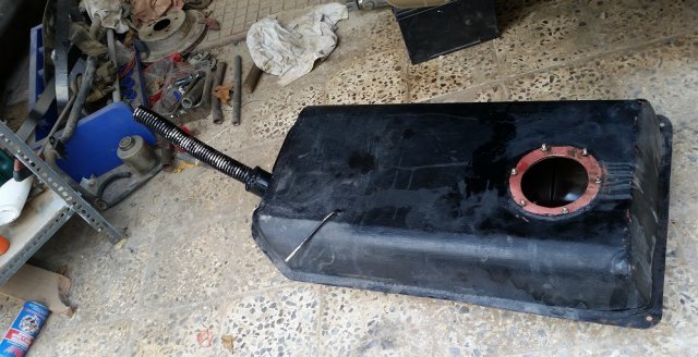 9. with the amount of power RB26's will be producing and considering future upgrading I have to increase fuel system efficiency setup that will be up to the task of delivery enough fuel. As well as, I wanted a close to stock looking boot .First I modified spare well pics are in previous post. Second, I modified tank, I striped all the old hoses and sending unit. Then cut tank’s upper half and clean inside tank, plenty of rust shuffled then I welded internal bars as a support to protect it from crashs and welded small plates as fuel baffle to protect fuel pump from sucking air and keep itself full at all times thus, prevents fuel starvation in cornering and accelerating. Fabricate new metal upper cover, welded and leak tested. Made vent line Bought Toyota supra fuel hunger and welbro455 fuel pump but for now I installed Toyota chaser turbo fuel pump just for starting and trial test purpose. drilled hole in the tank and fabricate two ring adapter plates, the lower one welded with bolts and wielded on the tank the other ring holder for seal hunger. The pump right now sits about a half inch from the bottom of the tank, it should be perfect. I also upgraded old rubber filler nick and cap with 1.5 inch flexible steel hose one end welded into the tank hole the other end fitted into rubber hose to cap’s nick and firmly clamped at both ends. I do have a pretty tank now