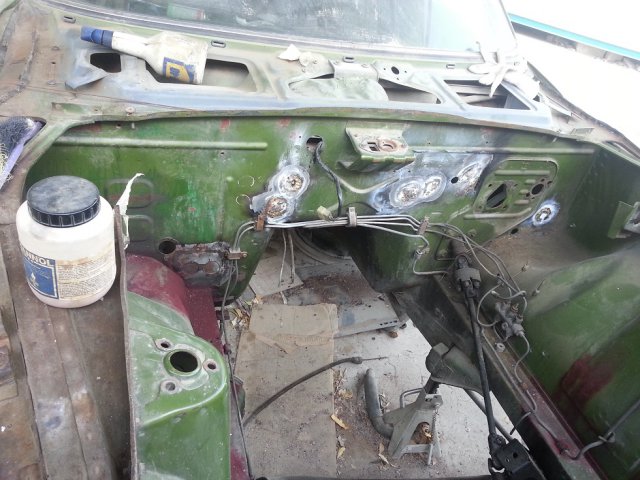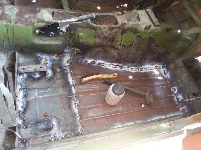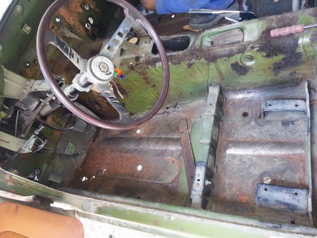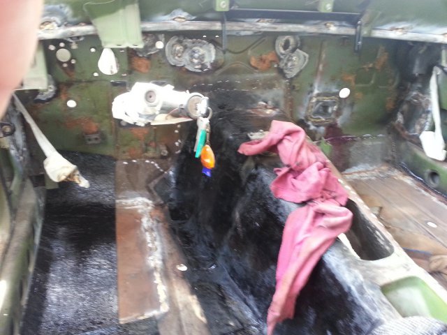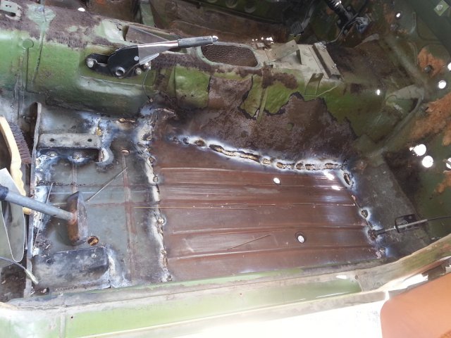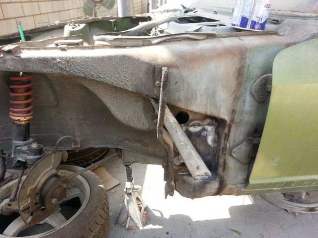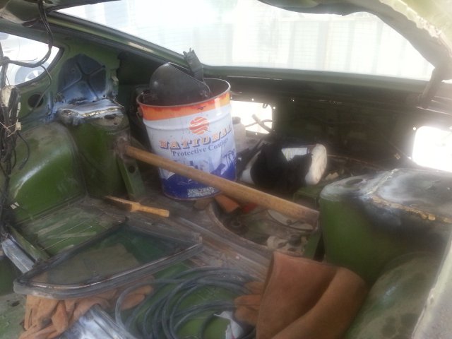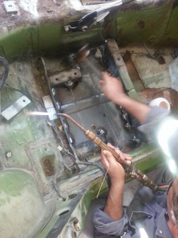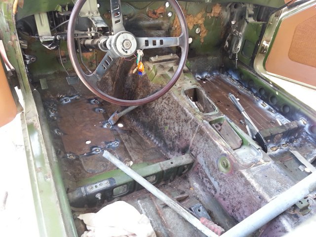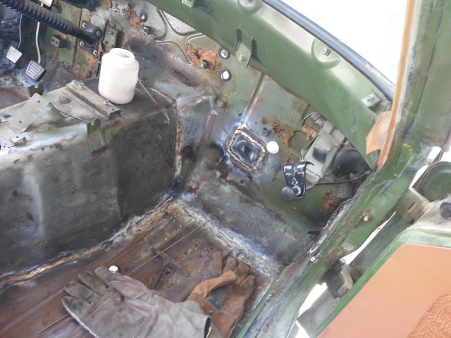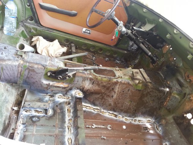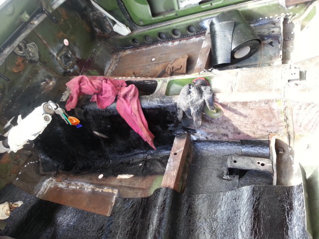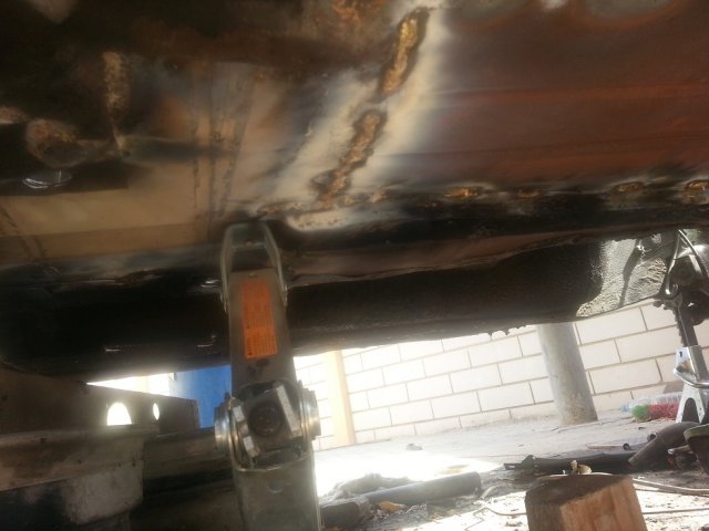 11. Body work Replacing Passenger Floor and driver floor were very corroded.Also welded small rusty areas all over the body. I modified body seat base to fit 300z seats. welded support bars to protect body from cracking and for safety. Instead of using por15.I used cheaper and stronger tar paper roll 3mm, that used for sealing building roofs, for covering the floors from noise and rust. Finished up Shorten the spare wheel well and made removable fuel cover tab for custom fuel tank, then rewelded it back as nice as possible to give stock looking.