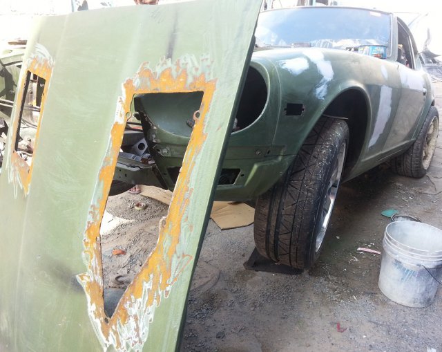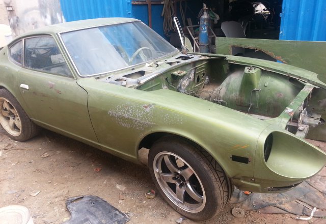 19. Hey Forum, I would like to share my project . Before three years I was planning to do AWD 240z. Bought 240z 72 without engine and gtr32 half cut , Skyline R32 - GTR , Engine RB 26 - Manual 4WD. After long search found out very costly with less potential benefits build. Here is my progress so far. Started installing rb26 engine with rb25 gearbox rb25 oil pan cut and fabricate metal adapter then welded it on oil pan