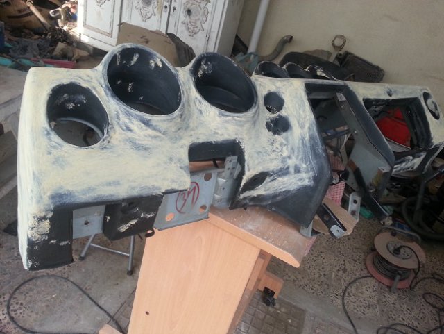 10. Dash had large crack holes, they were splitted the edges of the cracks flare upwards. I filled them with fiberglass then sand and flatten these flares down, then painted with plastic but cracks were in the typical places, and you could slide your fingers through them and may crack again in future. So decided to cover the dash with carbon fiber. First i painted it with epoxy resin and hardner coat to make it solid protected from any future cracking and flatten it out then layout carbon fiber cloth then put epoxy coat lastly, spray it with clear lacquer paint and do the same for all interior plastic pieces.