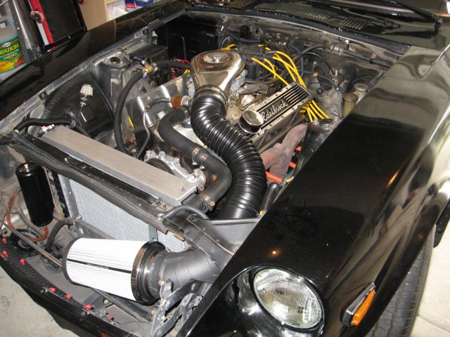 4A15- In case you're interested, I finally replaced my round carb-top air cleaner with a cold air system. No problems with hood clearance using the low profile air plenum. I plumbed it with 4" ducting and used a 9" cone filter mounted in front of the core support. Just another option for your consideration... JHM -