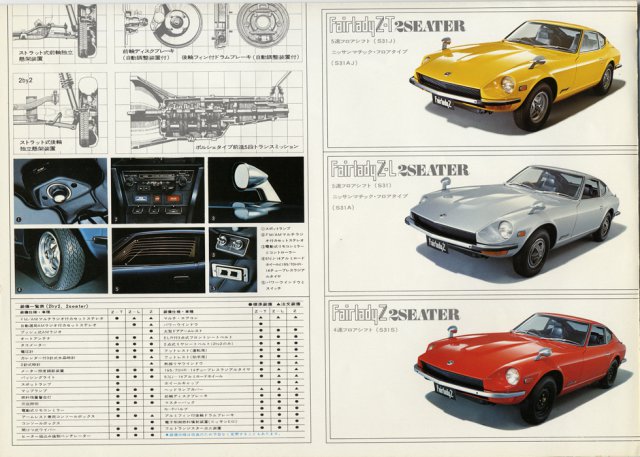 'S31' was updated S30-series Z to comply with new safety and anti-pollution regulations, and sold only in Japanese home market. Introduced July 1976, and discontinued in early September 1978 with the introduction of the S130-series range. C-S31 sub-variants: *S31-S 'Fairlady Z' ( 2-seater ) *S31 'Fairlady Z-L' ( 2 seater ) *S31-J 'Fairlady Z-T' ( 2 seater ) *GS31-S 'Fairlady Z' ( 2/2 seater ) *GS31 'Fairlady Z-L' ( 2/2 seater ) *GS31-J 'Fairlady Z-T' ( 2/2 seater ) All models came with L20 EGI engine. 'Fairlady Z' models were 4-speed trans only, whilst 'Z-L' and 'Z-T' models were 5-speed trans ( with Auto optional ). Alan T.