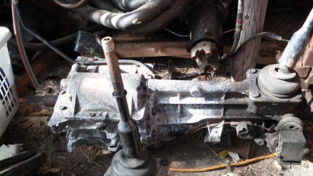 Picked up a T5 yesterday with everything, bell, clutch master, slave, hose. Flywheel, camero pedles (selling) shifter lever, clutch fork and camero cross member (selling or scrap) Now son need to clean it up, and start on removing the old 6 cyl.