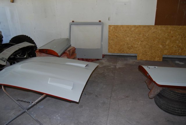 I stopped by the shop today to bring the motor back home, and took some pictures of the car with my real camera. Most of the parts are ready for paint, only the hood and one door have some issues to work out. He estimates it should be done by next week. I also took the Supertrapp muffler out that I've had forever, with the intention of taking some pictures to put on Ebay... but then I feel back in love with it again. -